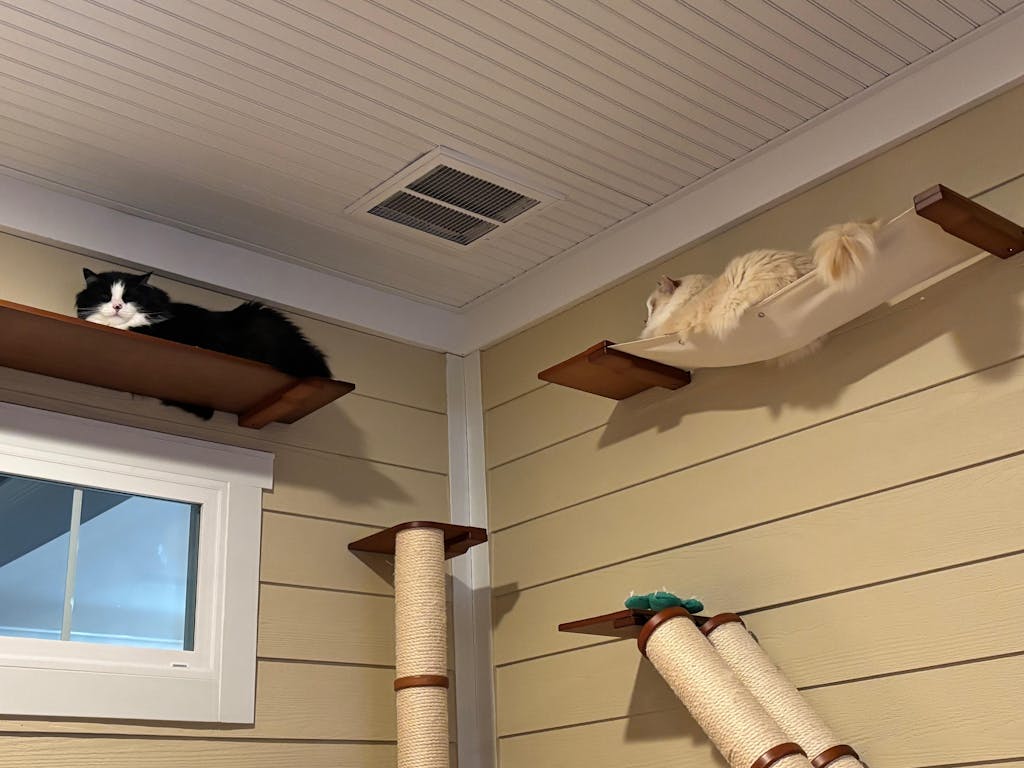 Our cat wall furniture is a great option for apartment dwellers for a couple of reasons. First, it can save precious floor space since it's mounted on the wall. This is especially useful in apartments where every square foot counts. Additionally, when space is limited, it's important for your cat to have their own area to play, scratch, and relax. Wall-mounted cat furniture provides just that, without taking up valuable floor space. We understand that many of our customers are concerned about losing their deposits due to damage caused by installing the furniture. However, we have put together a comprehensive blog on how to remove and fully restore your wall, providing peace of mind for apartment dwellers.