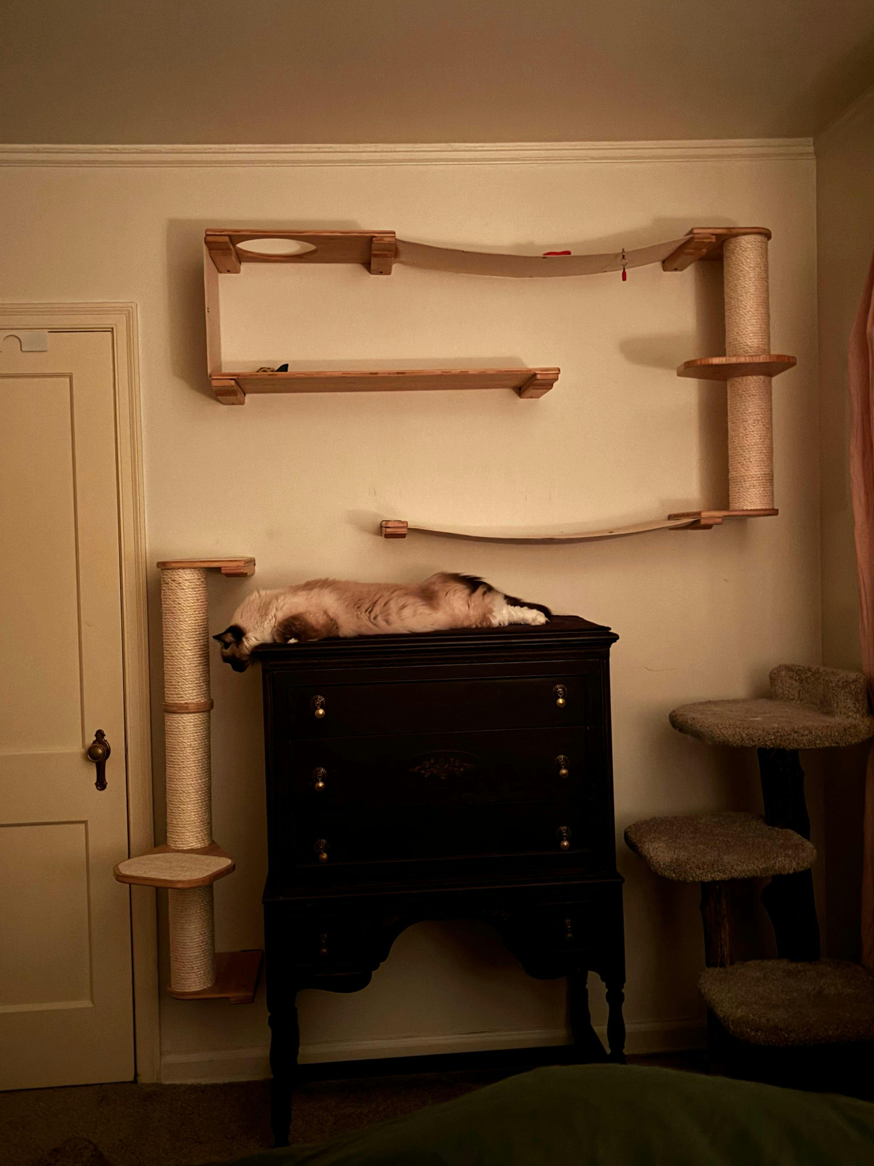 This was one of our first cat toys. We made it right after we started the Etsy shop and were still making the stuff from our apartment. We bought blank dolls and then Megan and her mom sewed the clothes for them.