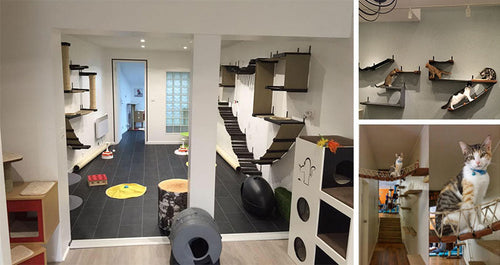 If you operate a shelter and would rather have furniture custom made for the space, we offer a 10% discount on all furniture to any non-profit shelter with a 501(c)(3) tax exempt status. We don't use carpet on any of our pieces, so they're pretty easy to clean. Although our fabric is washable, we've found shelving works best for rooms that hold many cats because they can easily be wiped clean.