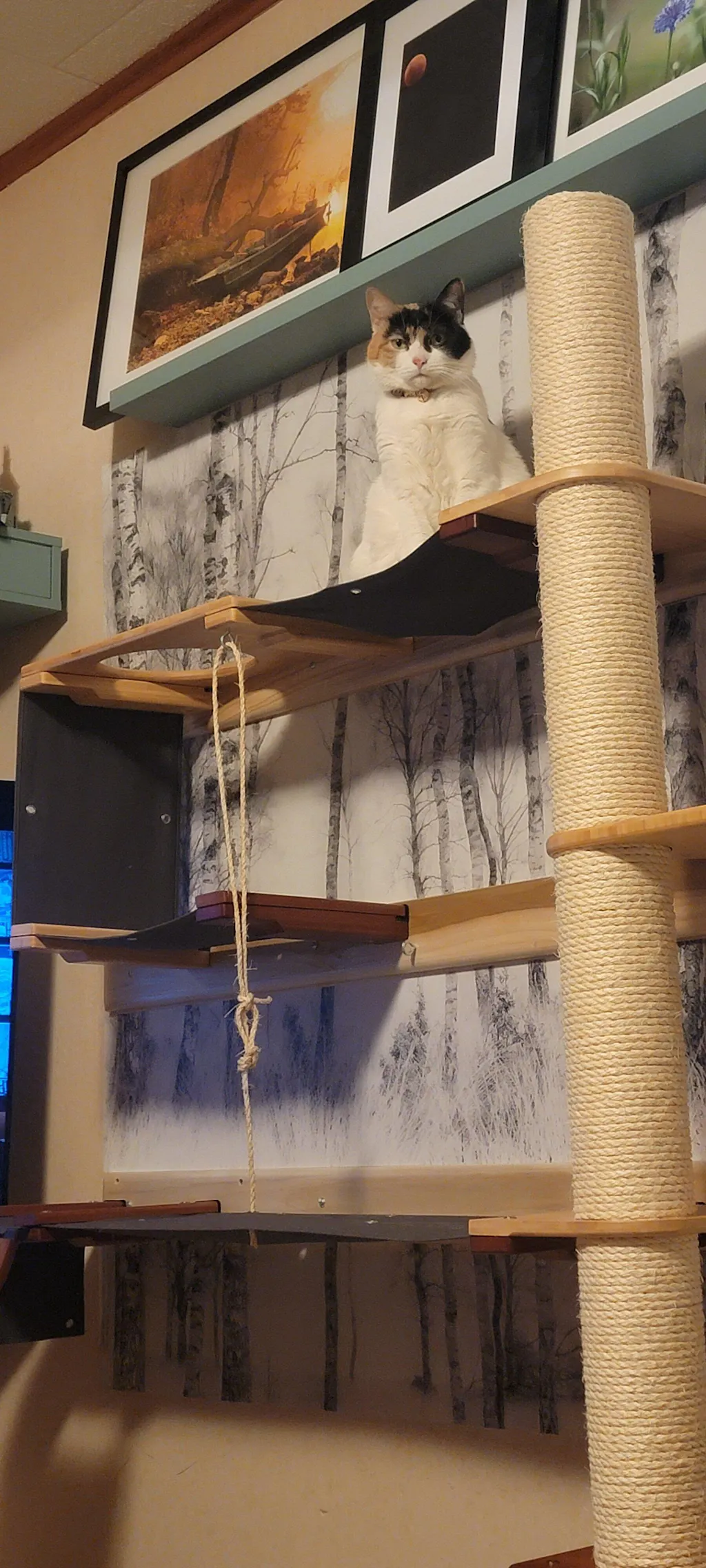 • Helps cats navigate their furniture wall and doubles as a cozy perch for quick rests