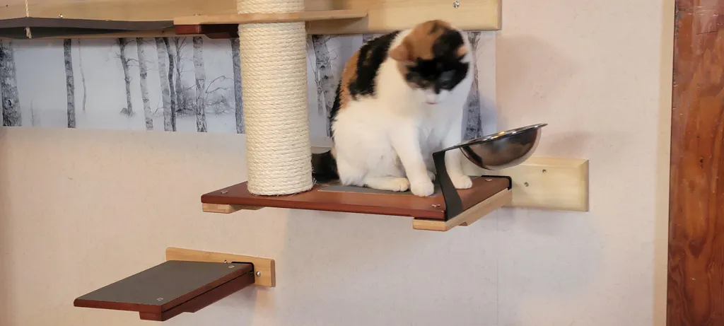 Our Cat Climbing Shelf is a small, single-stud option that helps cats traverse their cat furniture wall. These Cat Steps are most effective when used as a way for cats to get from one piece of furniture to the next, or as a perch to sit on for a quick rest. They can be installed to the left or right of our mounting planks, making them a versatile option for creating routes to and from the next adventure or nap! The Cat Climbing Shelf can also be added to existing cat wall furniture to extend a surface or create a runway. Purchase three or more for extra savings!