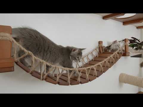 This Luxury Cat Tree is a compilation of almost every wall-mounted cat furniture concept we offer! Although some people prefer to get individual items and use the modular furniture to create their own DIY cat wall playground, the Juggernaut is for those who are looking for the full monty, already designed and ready to install. It includes multiple Hammocks, a Scratching Pole, and a Bridge connecting both sides together. This wall-mounted cat tree is a great option for homes with multiple cats or large cats, not only due to its large size but also because it offers multiple routes throughout the layout. Most cats don’t like to be cornered or feel like they are in a position where they cannot make a quick escape, so a layout like the Juggernaut can help your cat feel at ease.