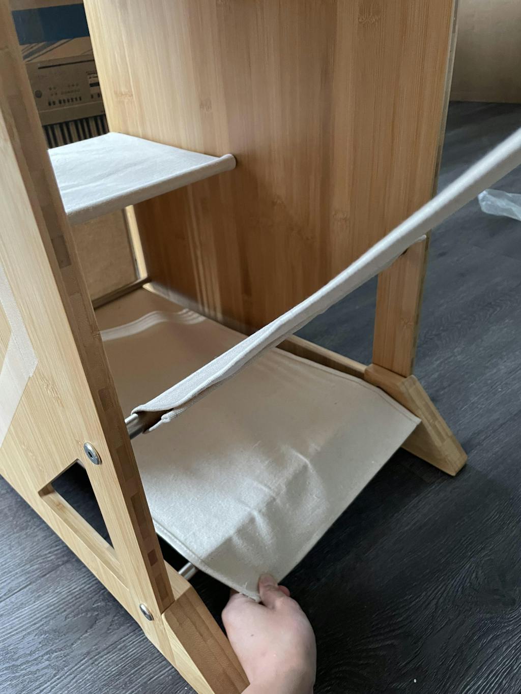 As soon as the bottom platform was partially attached my cat started climbing. I’m so impressed with the quality of the components and hardware (even the screws are robust)!