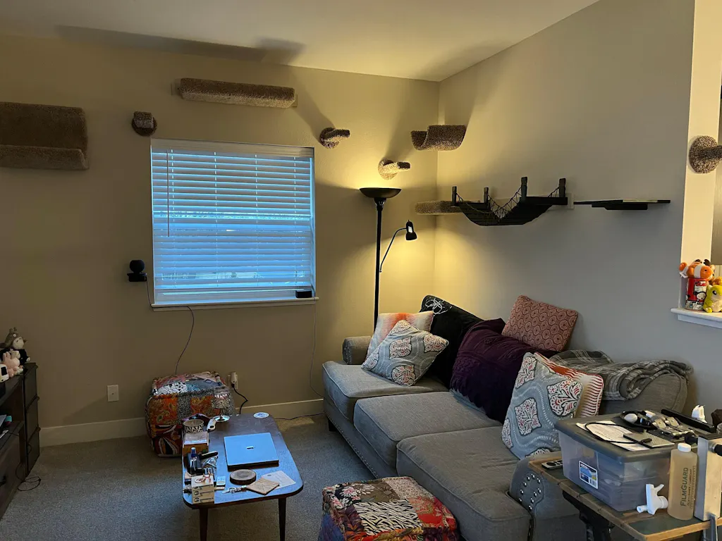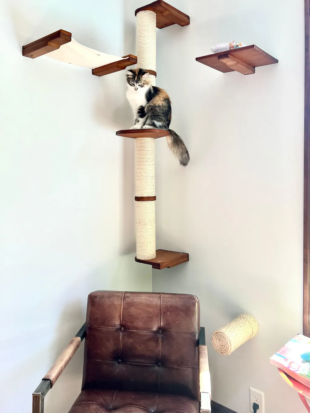 By extending six inches outward from each stud, these shelves excel at forming gentle and accessible pathways. When spaced as little as five inches apart, they create a smooth, low impact climbing route that works especially well for senior cats, kittens, or cats that prefer shorter and more frequent steps. Whether used as stepping points, connectors between larger wall pieces, or occasional perches, these shelves make vertical space feel intuitive and safe.