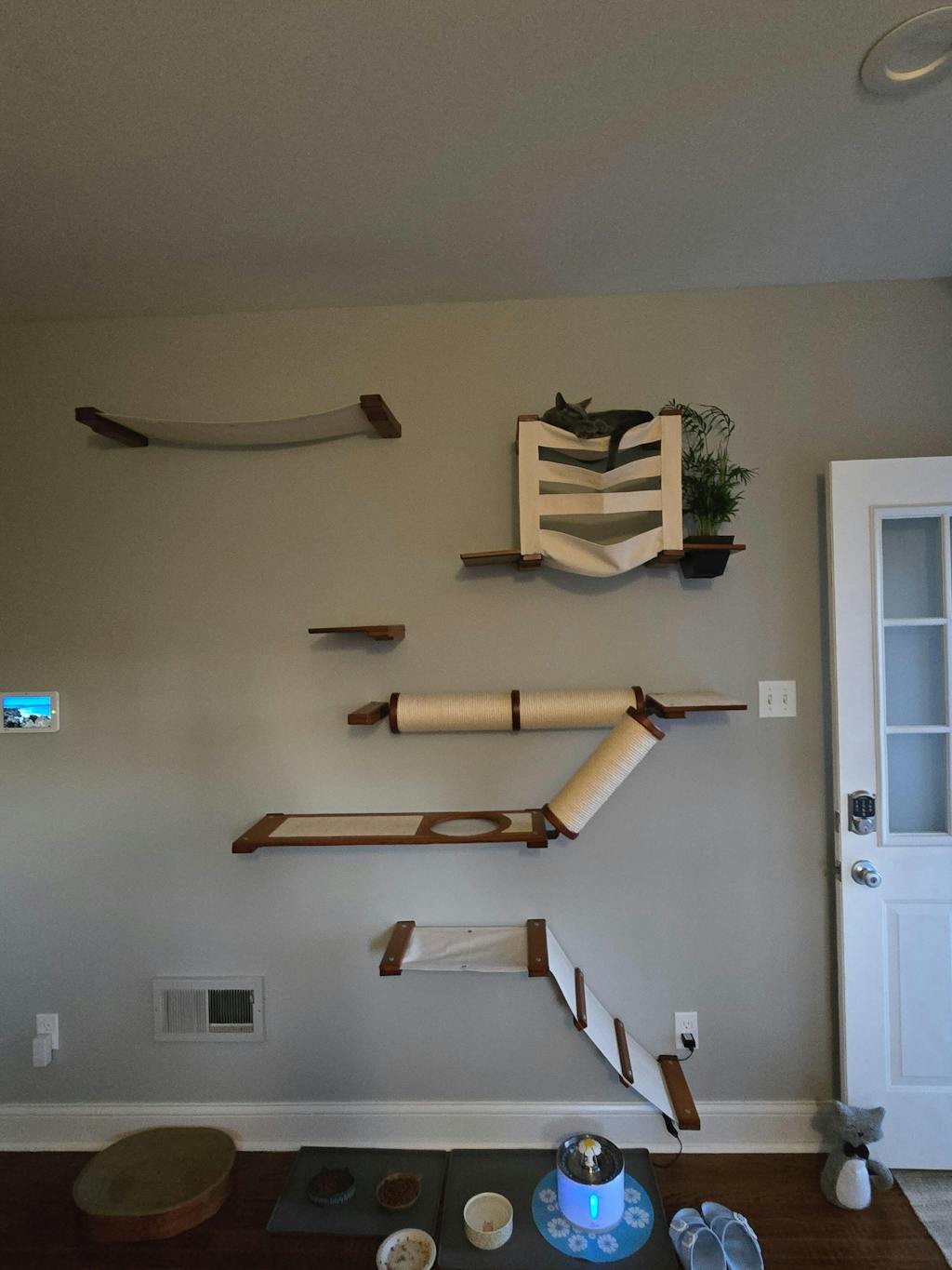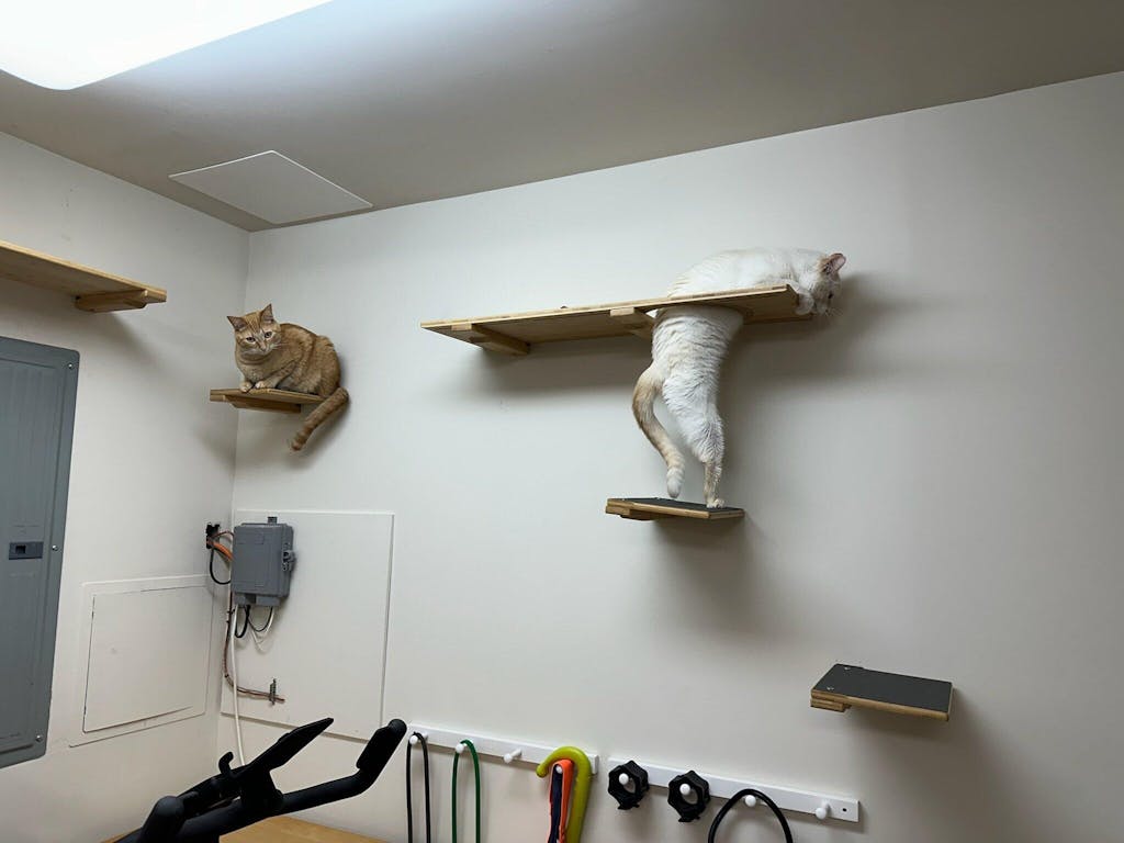 • Our Cat Shelves are solid bamboo platforms that provide a safe, elevated lounging spot for your cat on the wall.